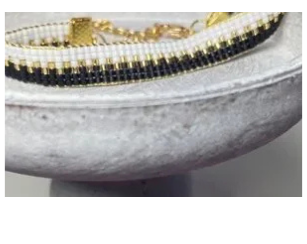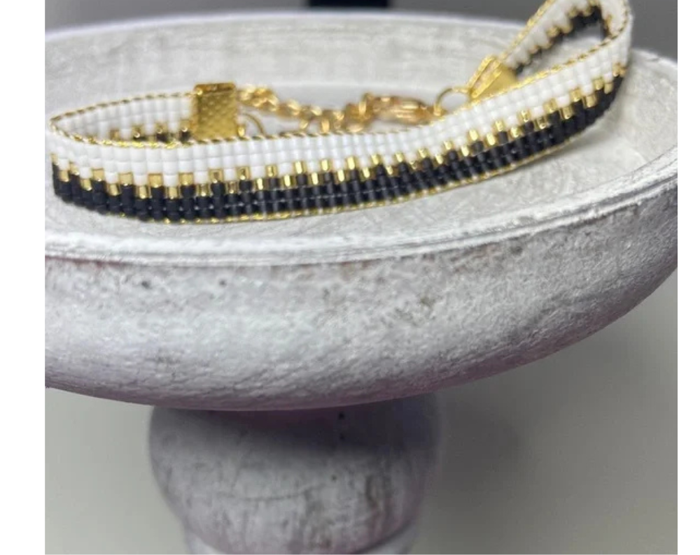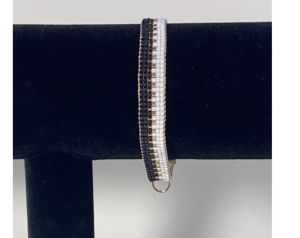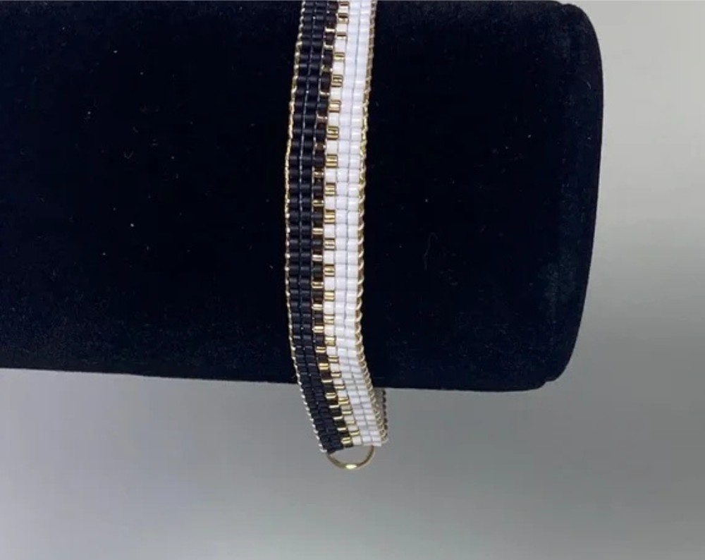 Black White and Gold Bracelet loom-beaded bracelet Miyuki Delica seed beads