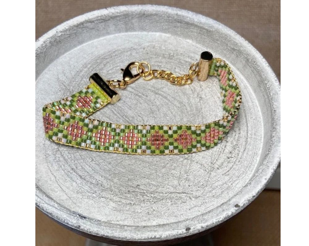 Bloom Design Studio Beaded Bracelet Pink and Green Pattern