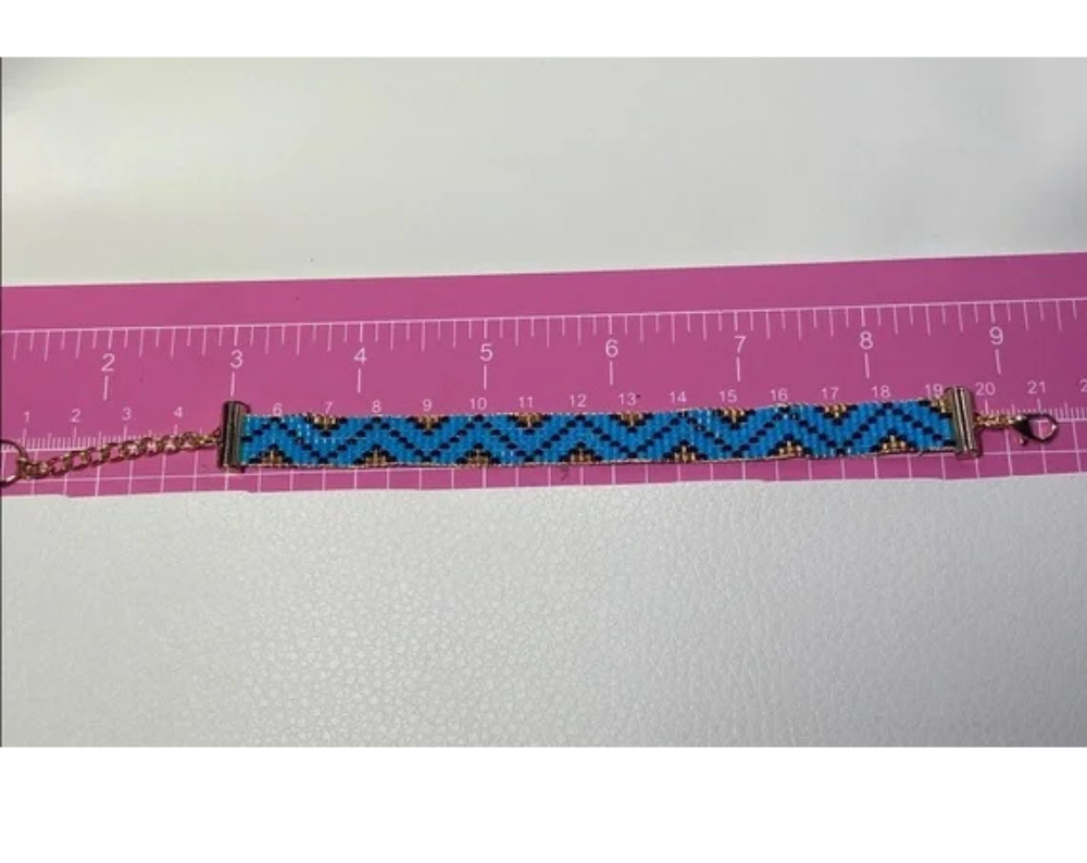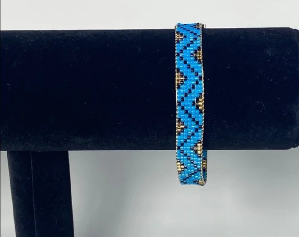 Add a unique touch to your accessory collection with this handcrafted loom-beaded bracelet.