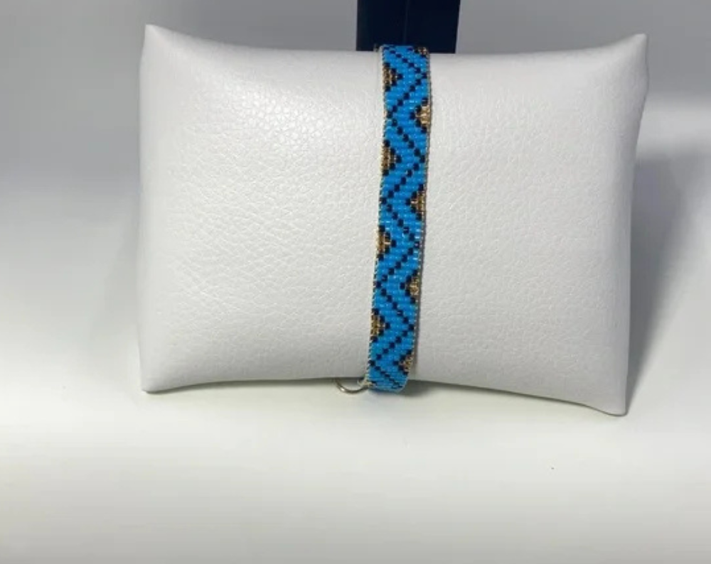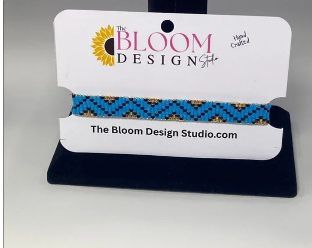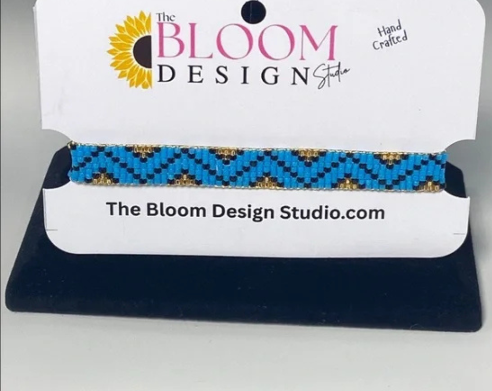 Each of our handcrafted loom-beaded bracelets begins its journey with a detailed design pattern, thoughtfully created to ensure a stunning final product. The process starts by setting up a specialized jewelry loom, which serves as the foundation for weaving. Using high-quality Japanese glass Miyuki Delica seed beads in size 11/0, known for their uniformity and vibrant colors, we meticulously string each bead to follow the intricate pattern.