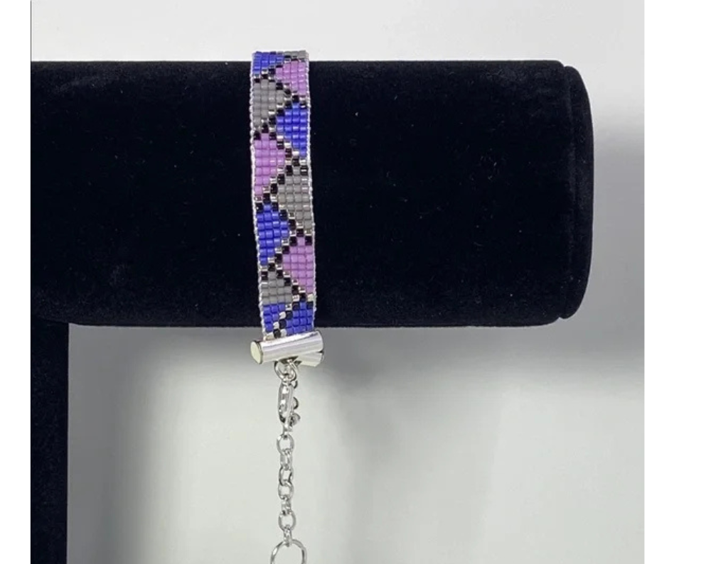 Add a unique touch to your accessory collection with this handcrafted loom-beaded bracelet.