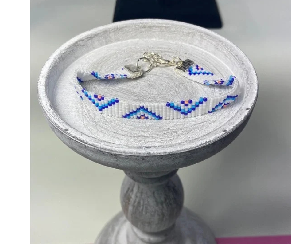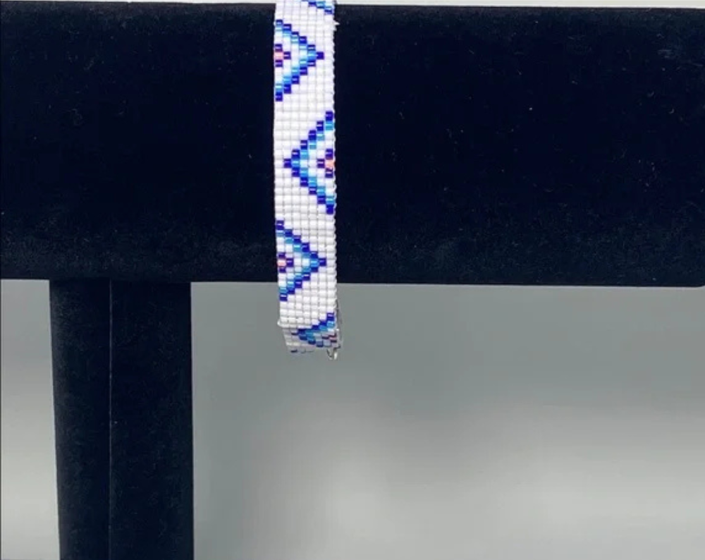 Add a unique touch to your accessory collection with this handcrafted loom-beaded bracelet.