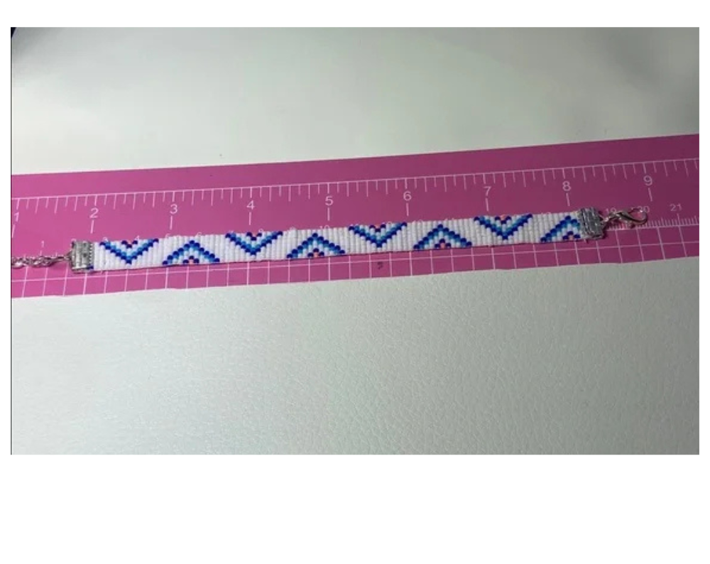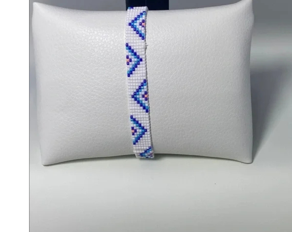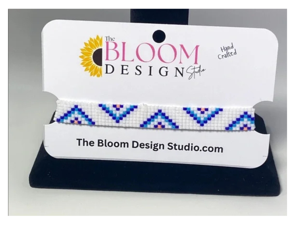 Each of our handcrafted loom-beaded bracelets begins its journey with a detailed design pattern, thoughtfully created to ensure a stunning final product. The process starts by setting up a specialized jewelry loom, which serves as the foundation for weaving. Using high-quality Japanese glass Miyuki Delica seed beads in size 11/0, known for their uniformity and vibrant colors, we meticulously string each bead to follow the intricate pattern.